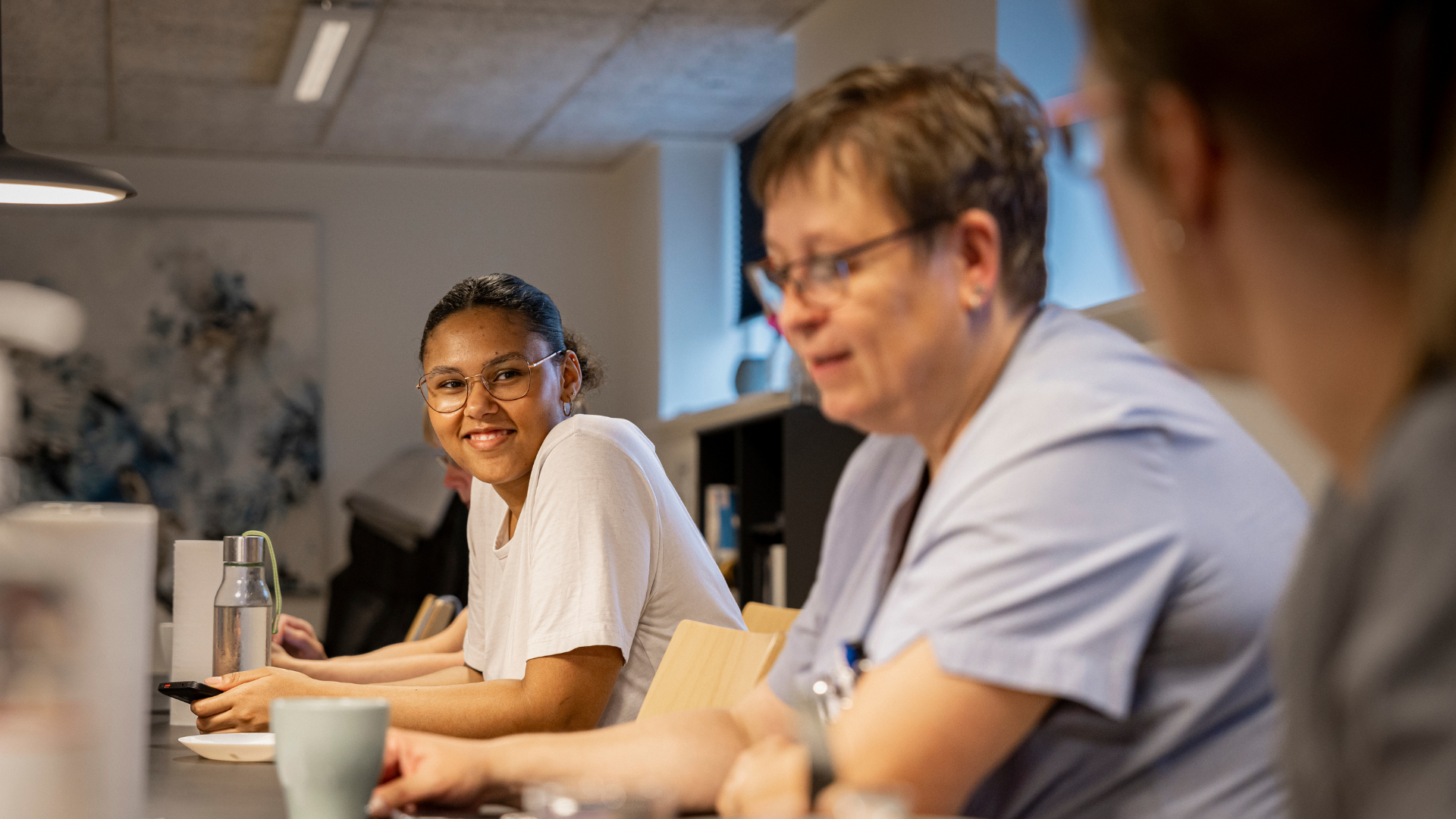 Vi har flere faggrupper, der vil altid være mulighed for faglig og kollegial sparring med andre social- og sundhedsassistenter/-hjælpere, sygeplejersker og aktivitetsmedarbejder. Der er et køkken tilknyttet, hvor der hver dag laves mad til vores beboere, og hvor vi har muligheden for at tilbyde vores beboere at være medbestemmende på menuplanen.
